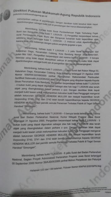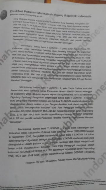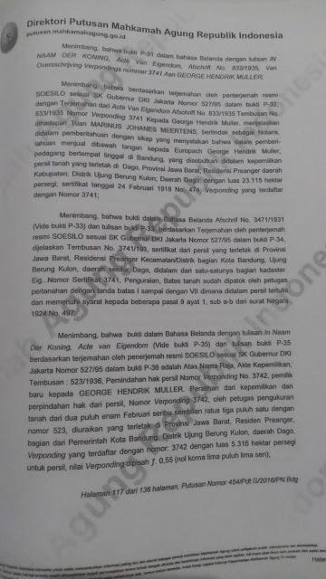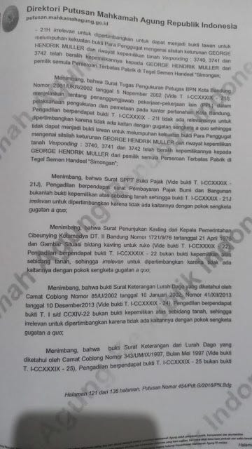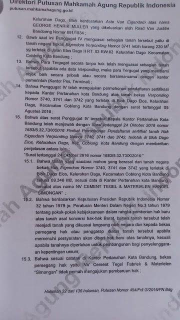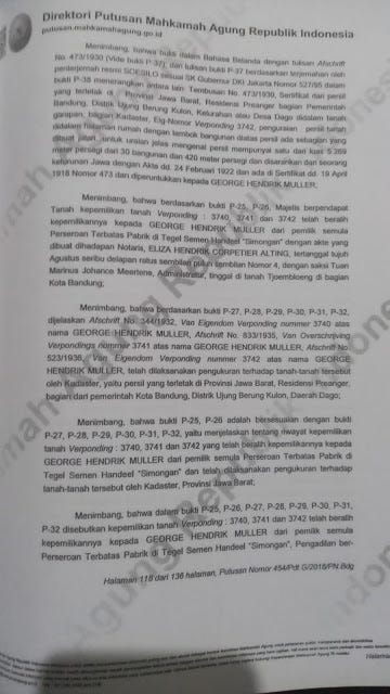 putusan nomor 454/PDT.G/2016/PN , tentan dago elos Muller cs hal 100