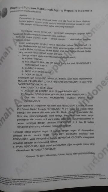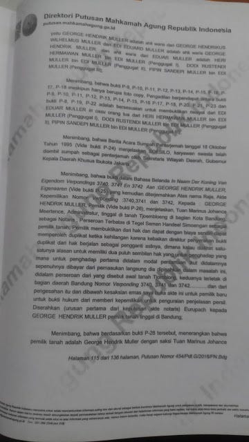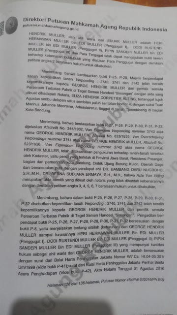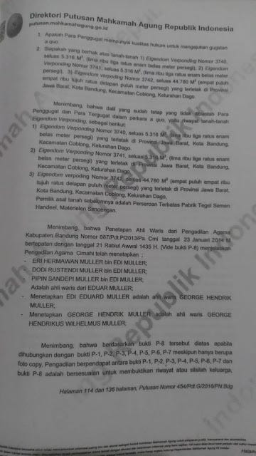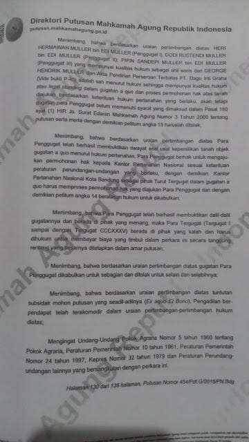 putusan nomor 454/PDT.G/2016/PN , tentan dago elos Muller cs hal 104