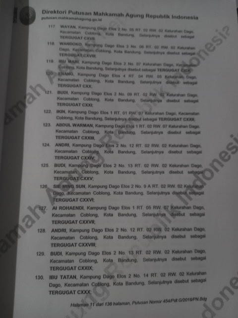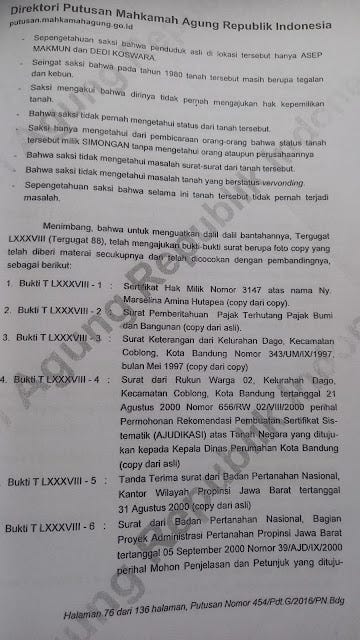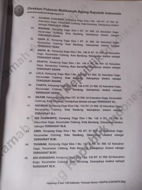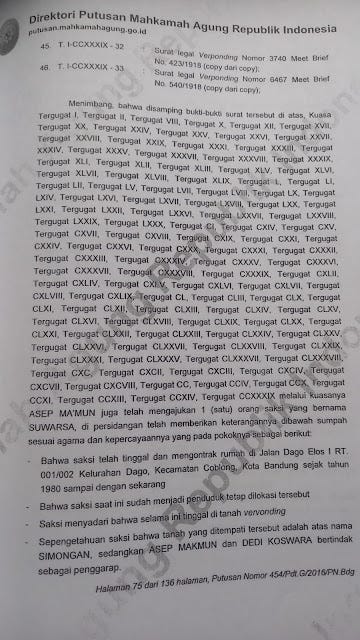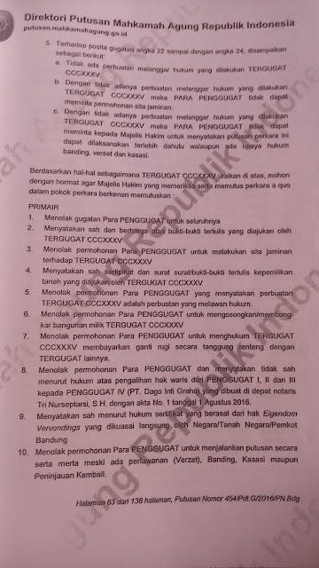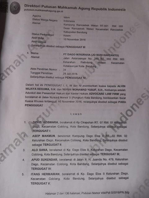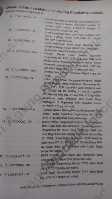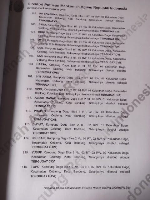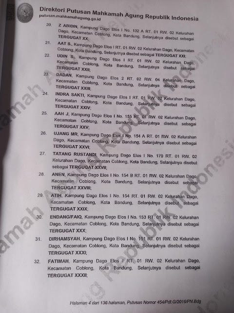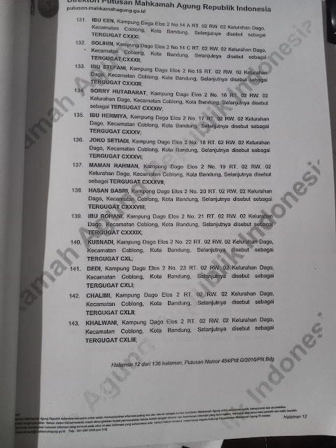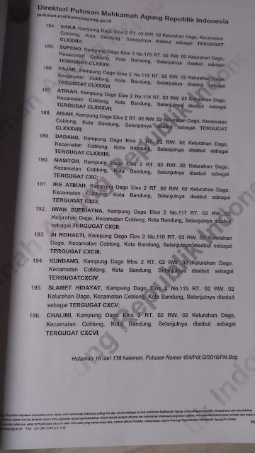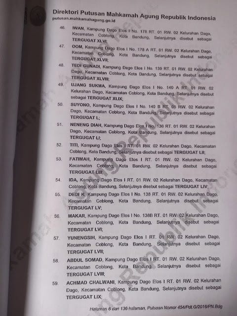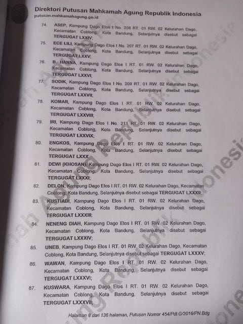 Putusan nomor 454/PDT.G/2016/PN.bdg Kasus Perdata Dago Elos 2016 hal 136