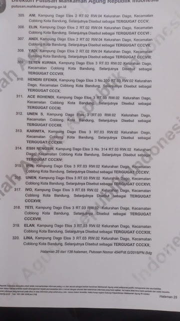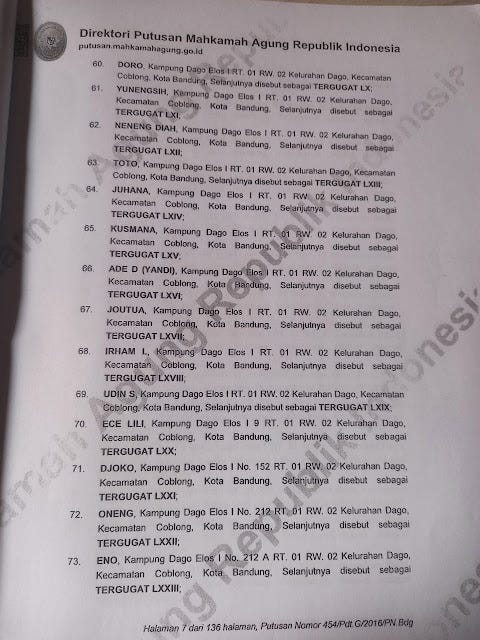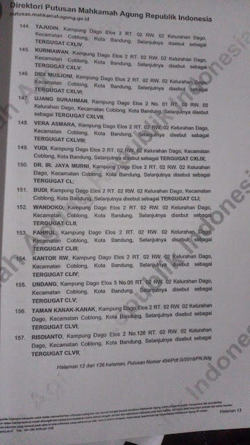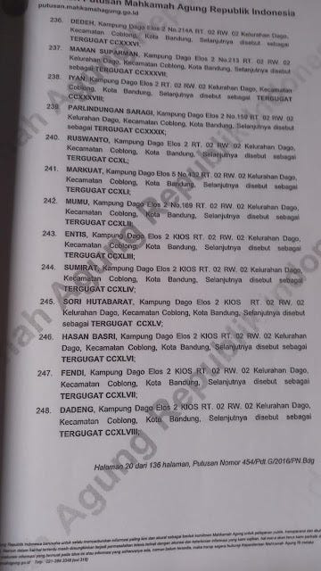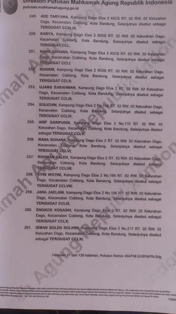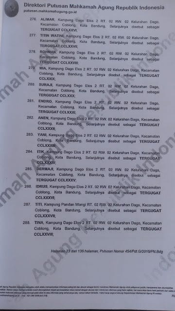putusan Pengadilan 2016 kasus Dago Los Kasus Kampung Cirapuhan
