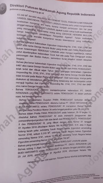 putusan nomor 454/PDT.G/2016/PN , tentan dago elos Muller cs hal 102