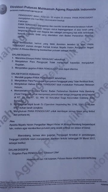 putusan nomor 454/PDT.G/2016/PN.bdg Dago Elos Putusan Pengadilan Negeri Bandung kasus Dago Elso 2016 sampai dengan halaman lengkap 114