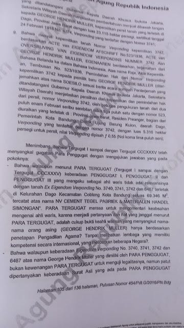 putusan nomor 454/PDT.G/2016/PN , tentan dago elos Muller cs hal 105