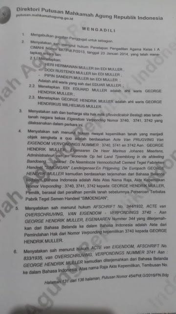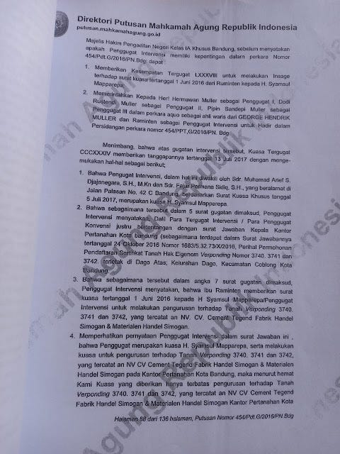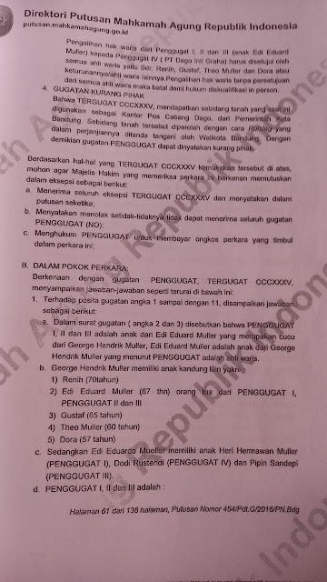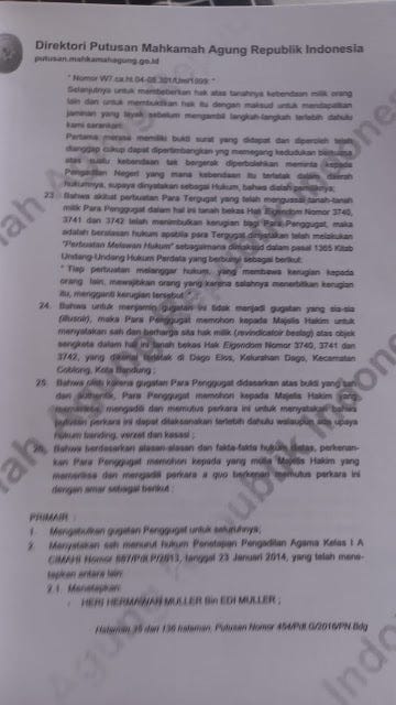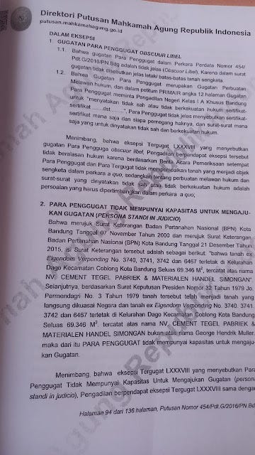 Tentang putusan nomor 454/PDT.G/2016/PN , dago elos Muller cs hal 92
