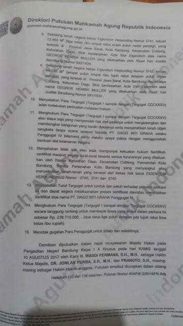 Putusan nomor 454/PDT.G/2016/PN.bdg Kasus Perdata Dago Elos 2016 hal 135