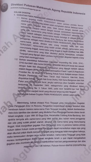 Tentang putusan nomor 454/PDT.G/2016/PN , dago elos Muller cs hal 91